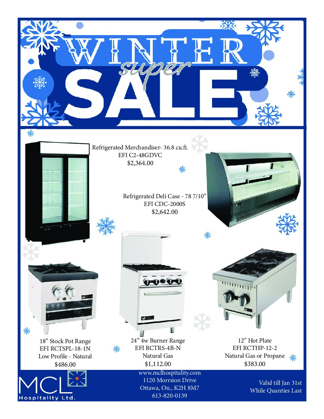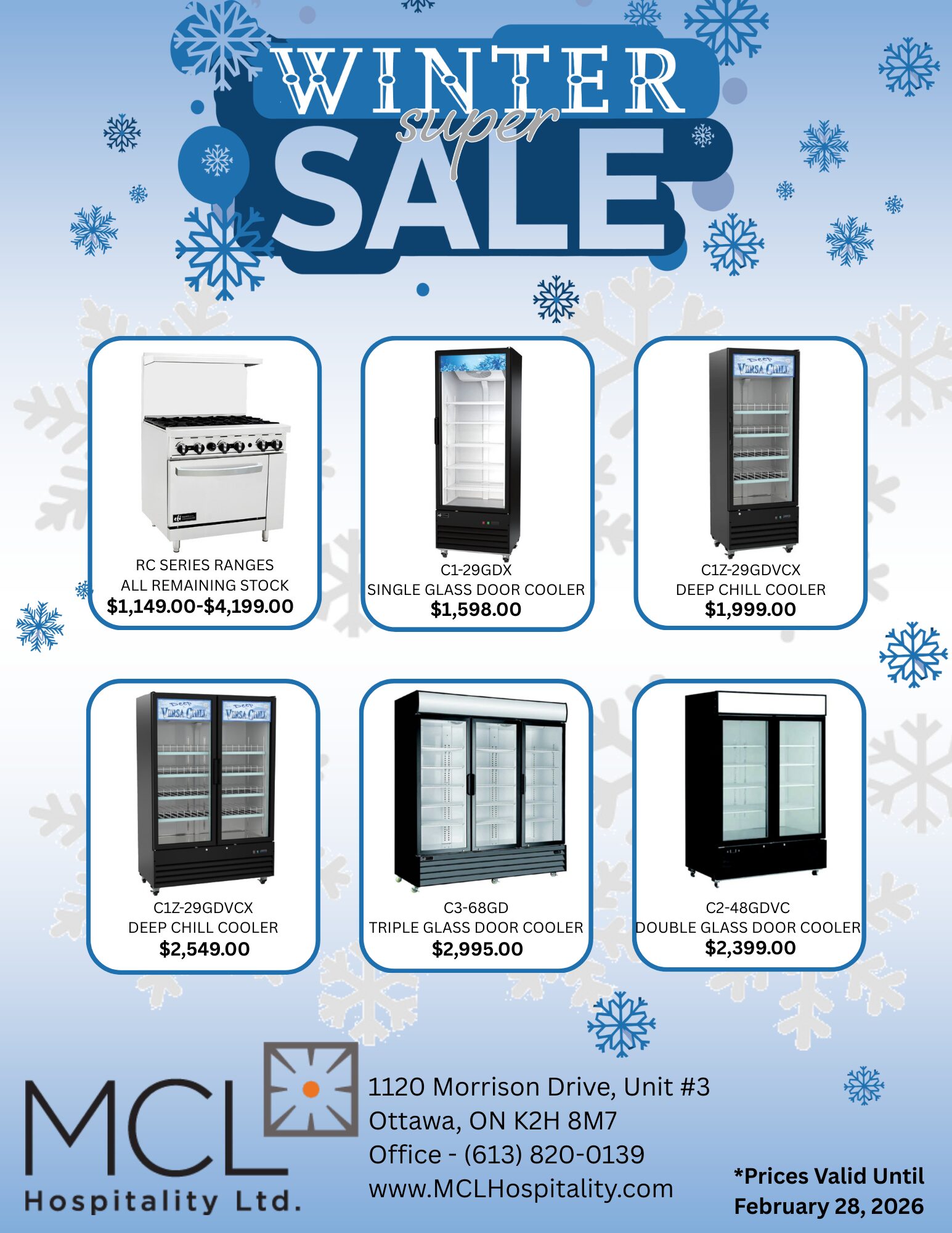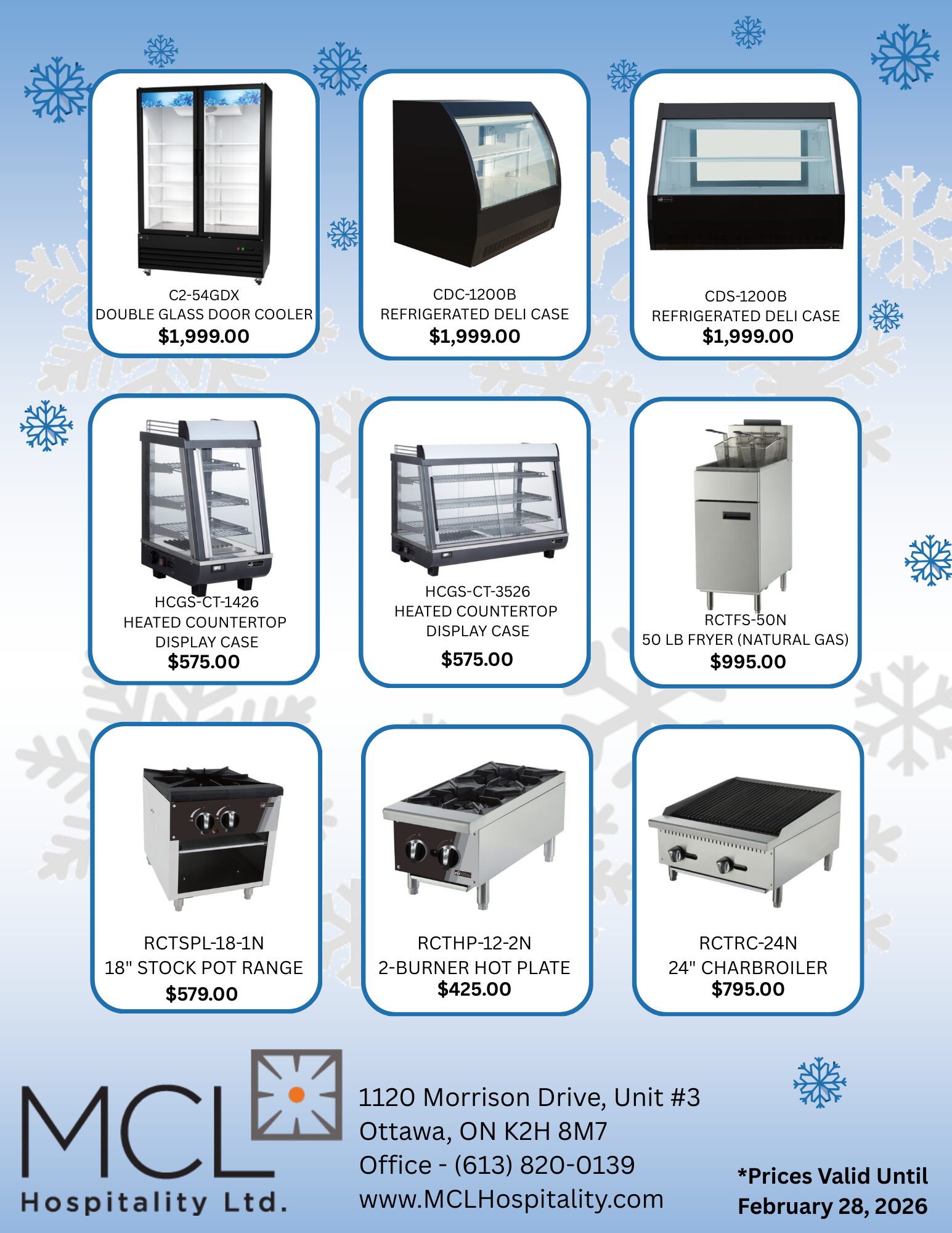 As a leading commercial foodservice provider MCL Hospitality Ltd. offers brand name restaurant/hotel equipment, custom fabrication, and smallware supplies. Located in Ottawa and serving the surrounding areas of Eastern Ontario. Delivery across Canada available.