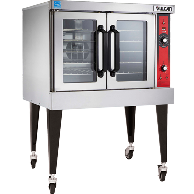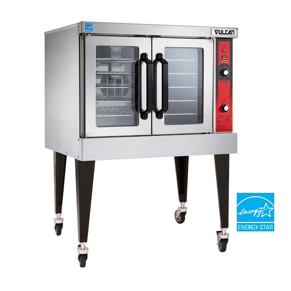 Convection Oven, gas, single-deck, standard depth, solid state controls, electronic spark igniter, 5-hour timer with digital display enhancement, 150° to 500°F temperature range, (5) oven racks per deck, independently operated removable door with window, porcelain on steel interior, interior light, stainless steel front, top, & sides, 23-3/4″ painted legs, 1/2 HP blower motor, 50,000 BTU, NSF, NSF, CSA Star, CSA Flame, ENERGY STAR®