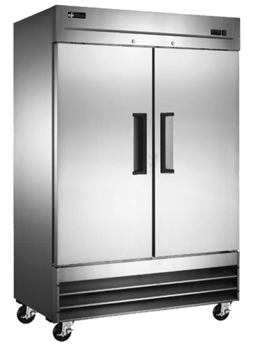 X-Line Reach-In Freezer, 47 cu. ft. capacity, bottom-mounted self-contained refrigeration, (2) self-closing solid door with recessed handle, lock & stay open feature, (6) adjustable plastic-coated wire shelves, -22° to -18°C temperature range, auto evaporation, stainless steel interior & exterior, casters, R290 Hydrocarbon refrigerant, 1 HP, 115v/60/1-ph, 7.56 amps, NEMA 5-15P, cETLus, ETL-Sanitation